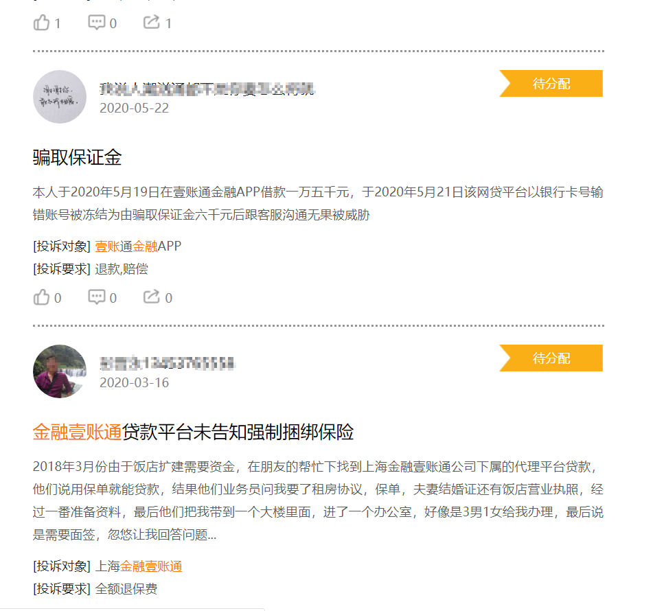 两年时间里,助贷业务和风险管理业务收入占比下滑了一半,只剩下了不到三分之一。另外从黑猫投诉上可以发现金融壹账通相关业务的一些投诉,但真实性需进一步考证。