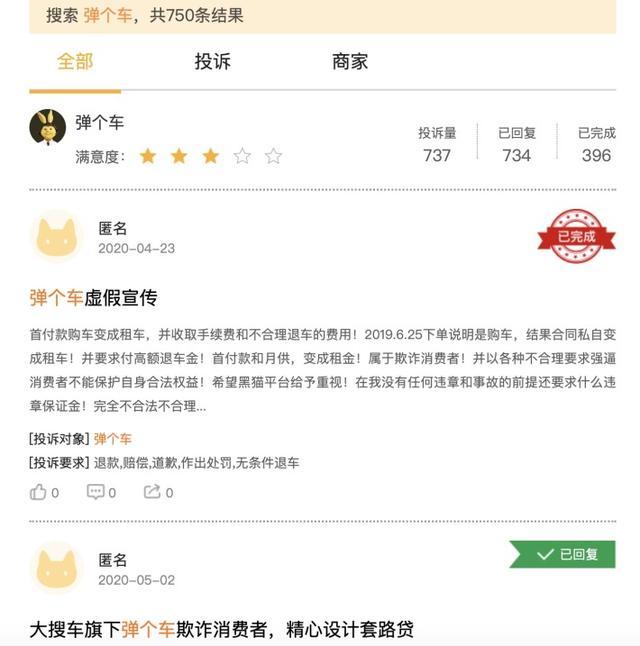 近日“弹个车”遭到了大量用户投诉,在相关的投诉平台上“买车变租车”、“消费欺诈”的投诉字眼就超过100条。