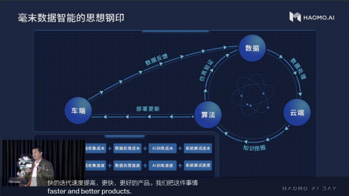 顾维灏讲述了背后思考过程:“数据是人工智能最大的驱动力,也是人工智能进步过程中最大的成本。自动驾驶产品的完善是个漫长的进化过程,就像是人在漫长的历史过程中,找到用最低能量消耗维持生命的方法,开发智力和积累经验进化人类文明。所以毫末数据智能的核心,就是降低成本、提高迭代速度。“顾维灏将其比喻为毫末数据智能的“思想钢印”,毫末将用更低的成本和更快的迭代速度,提供更安全、更好用的产品提供给用户。