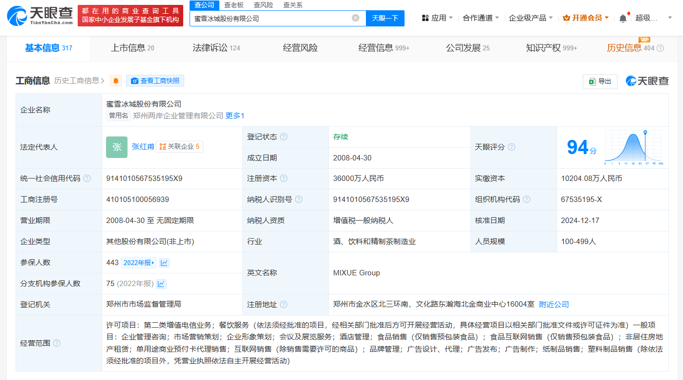 天眼查App显示,近日,蜜雪冰城股份有限公司登记《雪王之奇幻沙州》动画片作品著作权,类别为类似摄制电影方法创作的作品。