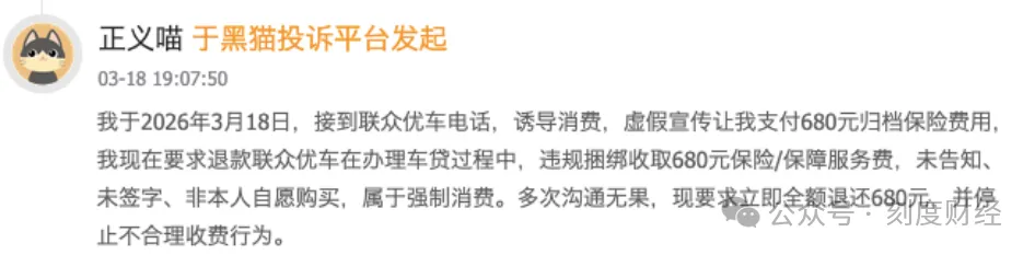 2026年3月,有用户接到电话,称不支付680元归档保险就无法拿回抵押绿本,属典型的强制捆绑与虚假宣传。