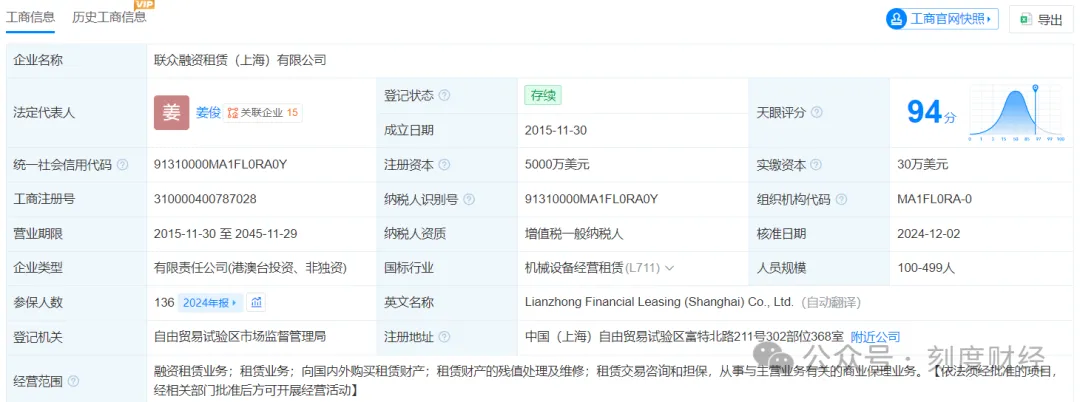 联众优车成立于2015年11月,前身为联众融资租赁(上海)有限公司,注册资本5000万美元,2019年完成品牌升级,更名为“联众优车”。作为二手车融资租赁领域的重要参与者,该公司依托核心团队的行业经验,在短短数年间实现了规模的快速扩张。