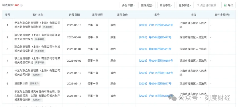 当前,联众优车正面临多重困境,首先是司法纠纷频发,天眼查显示,截至4月20日,公司司法案件已超过1400件,大量追偿权纠纷案件反映出资产回收难度较大,风控体系存在漏洞。