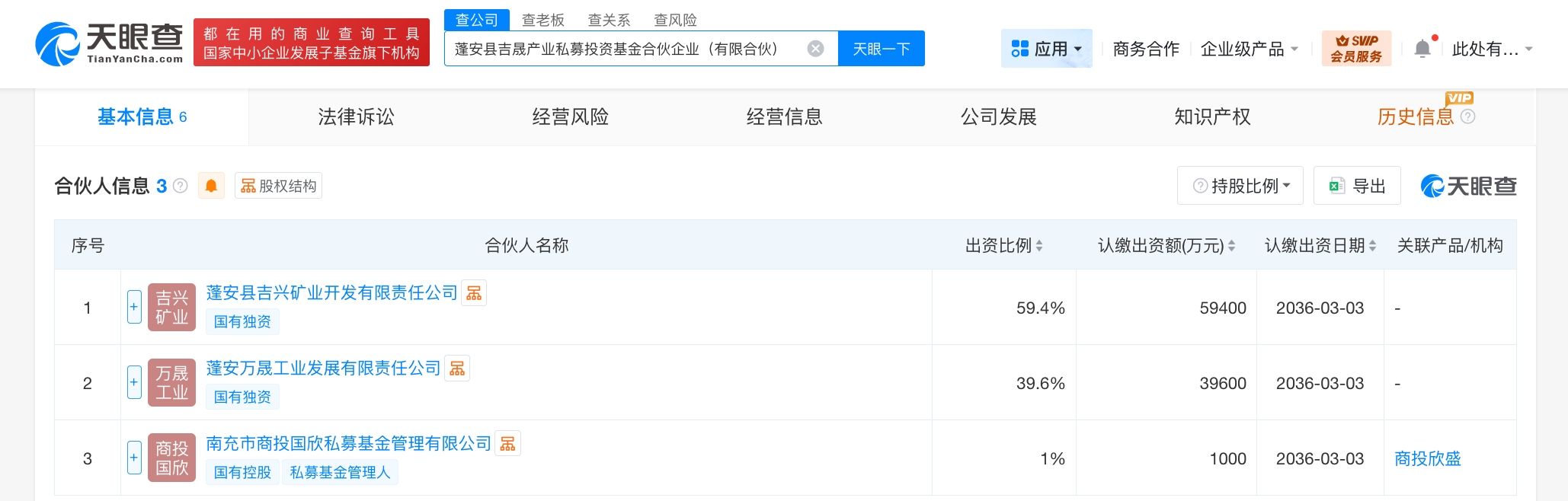 天眼查工商信息显示,近日,蓬安县吉晟产业私募投资基金合伙企业(有限合伙)成立,执行事务合伙人为南充市商投国欣私募基金管理有限公司,出资额10亿人民币,经营范围为以私募基金从事股权投资、投资管理、资产管理等活动。合伙人信息显示,该基金由蓬安县吉兴矿业开发有限责任公司、蓬安万晟工业发展有限责任公司、南充市商投国欣私募基金管理有限公司共同出资。