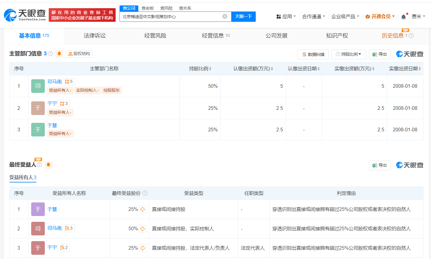 北京梅迪亚中文影视策划中心成立于1999年8月,法定代表人为于宁,注册资本10万人民币,经营范围包括影视策划服务、企业形象策划服务、为承办展览展示提供服务等,由司马南、于宁、于慧共同持股,其中司马南持股比例为50%。参保人员信息显示,该公司2023年参保人数为1。