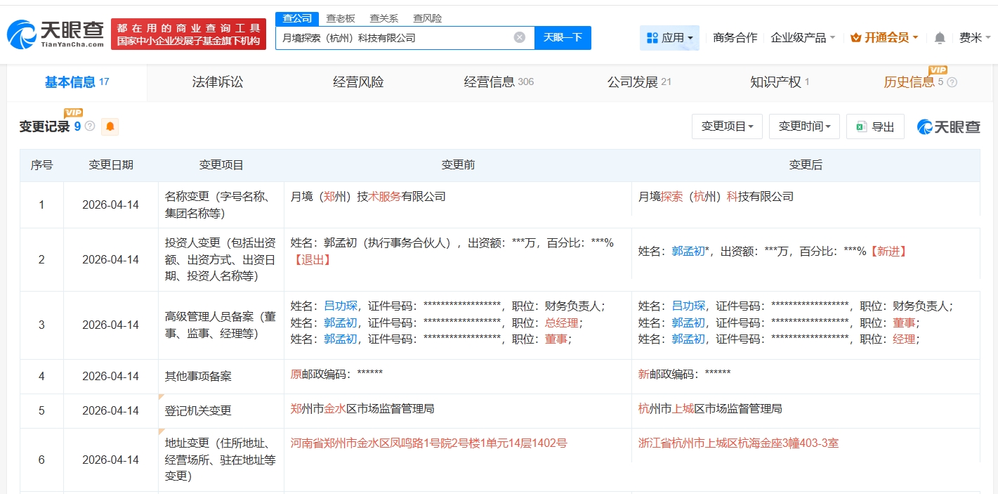 天眼查App显示,近日,死了么App关联公司月境(郑州)技术服务有限公司发生工商变更,企业名称变更为月境探索(杭州)科技有限公司。