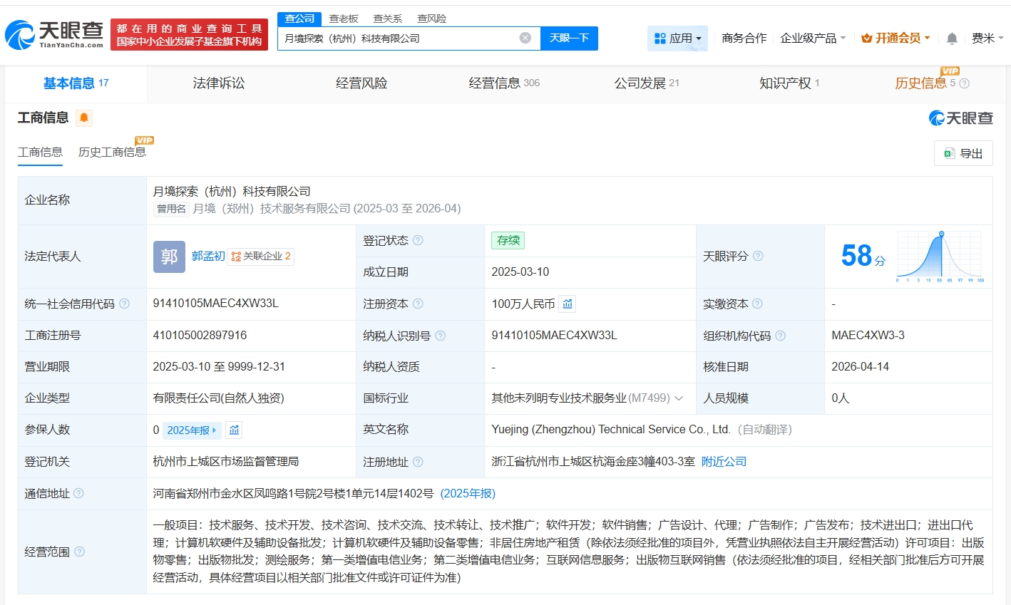该公司成立于2025年3月,法定代表人为郭孟初,注册资本100万人民币,经营范围包括软件开发、软件销售、广告制作等,由郭孟初全资持股。