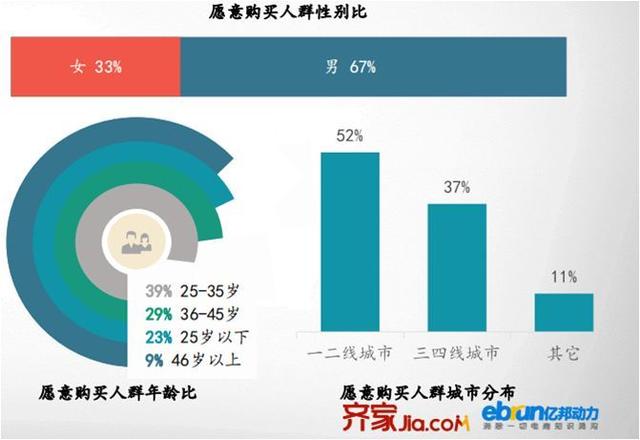 其次安装门锁装修刚需,当前智能家居用户年龄趋向年轻化。据《2017年度互联网家装用户洞察报告》显示,愿意购买智能家居的用户中,35岁及以下占比62%。这部分人群乐于为科技含量高的智能家居产品“买单”,且并不缺乏消费能力,也在逐渐成为智能家居的消费主力军。