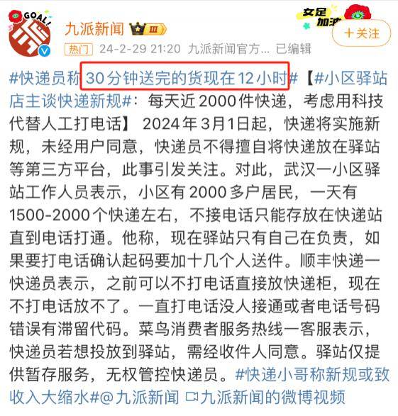 有快递员说,原本只有 30 分钟送完的货,现在要 12 小时…