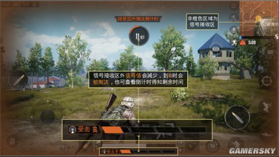 根据官方介绍,在游戏战斗界面中,信号条显示在选手的健康条下方。在竞赛开始后,地图上将出现圆形的信号接收区,随着竞赛的进行,信号接收区会不断缩小。选手处于信号接收区外,信号值将会不断降低。