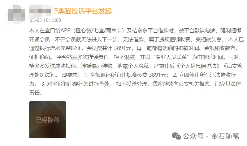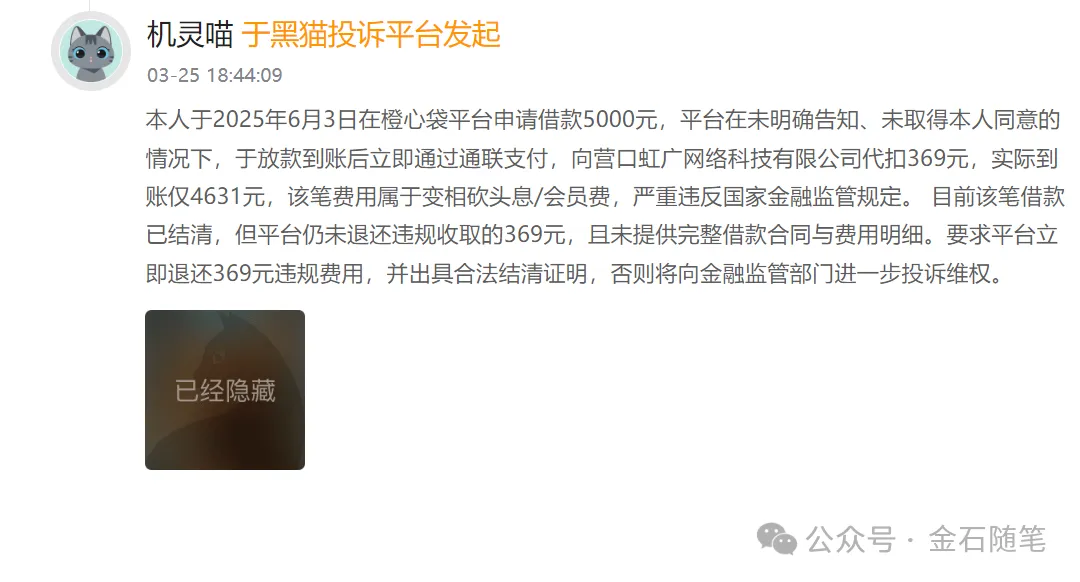 砍头息严重!借款4000先扣399,橙心贷投诉飙升,用户直呼:黑网贷观点