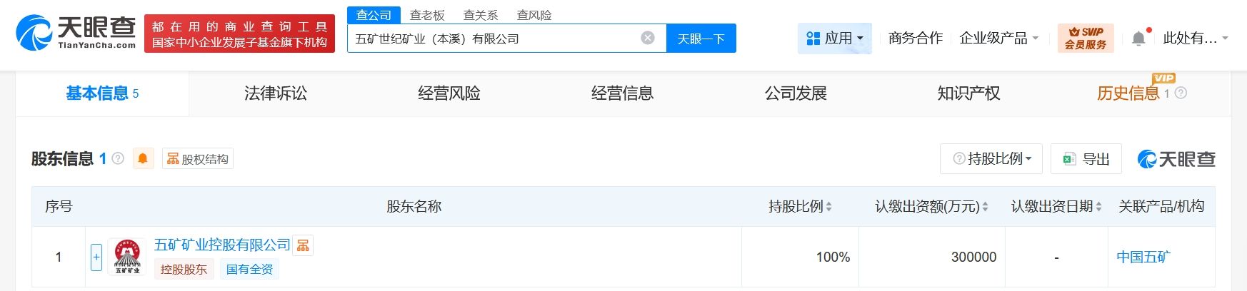 天眼查工商信息显示,近日,五矿世纪矿业(本溪)有限公司成立,法定代表人为刘增社,注册资本30亿人民币,经营范围含非煤矿山矿产资源开采、金属与非金属矿产资源地质勘探、矿产资源勘查、选矿、金属矿石销售、非金属矿及制品销售、矿山机械销售、金属制品销售等。股东信息显示,该公司由中国五矿集团旗下五矿矿业控股有限公司全资持股。
