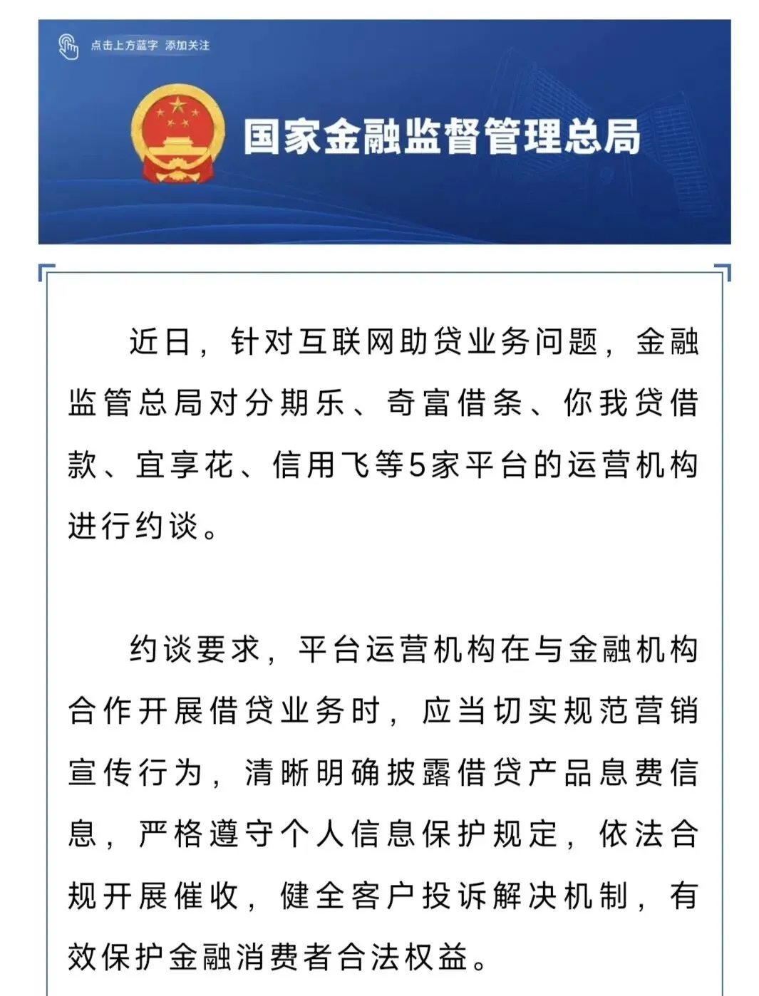 2026年3月13日,国家金融监督管理总局正式约谈你我贷运营机构,提出四大整改要求: