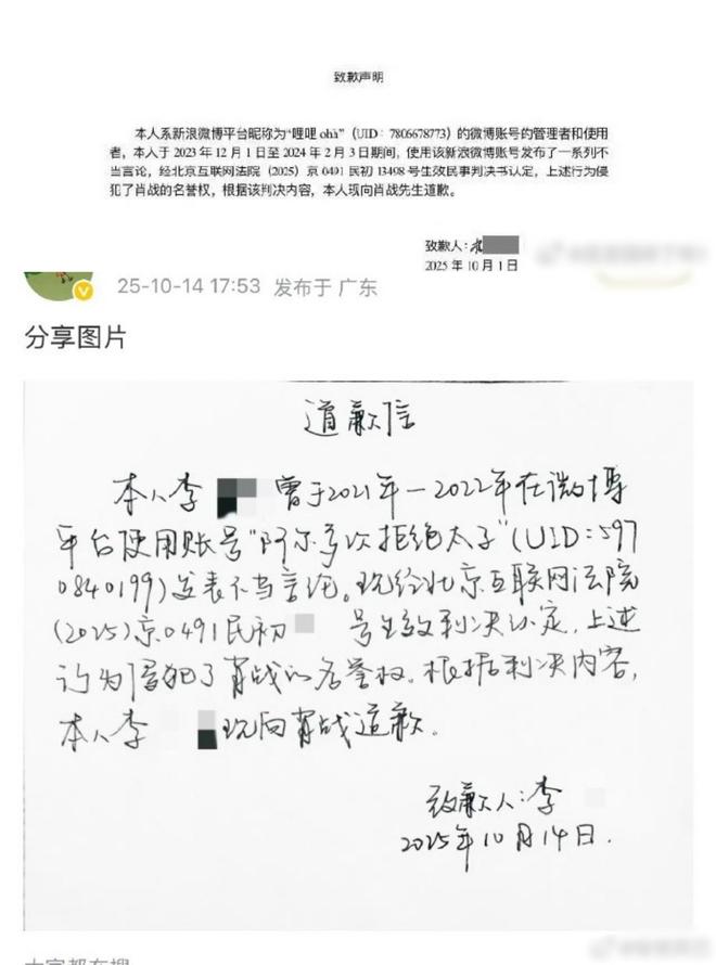 肖战维权案件审理终结 侵权肖战黑粉近期接连公开致歉观点