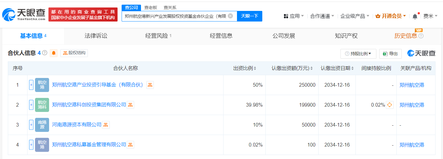 天眼查App显示,近日,郑州航空港新兴产业发展股权投资基金合伙企业(有限合伙)成立,执行事务合伙人为郑州航空港私募基金管理有限公司,出资额50亿人民币,经营范围为创业投资,以私募基金从事股权投资、投资管理、资产管理等活动,由郑州航空港产业投资引导基金(有限合伙)、郑州航空港科创投资集团有限公司、河南港源资本有限公司、郑州航空港私募基金管理有限公司共同出资。