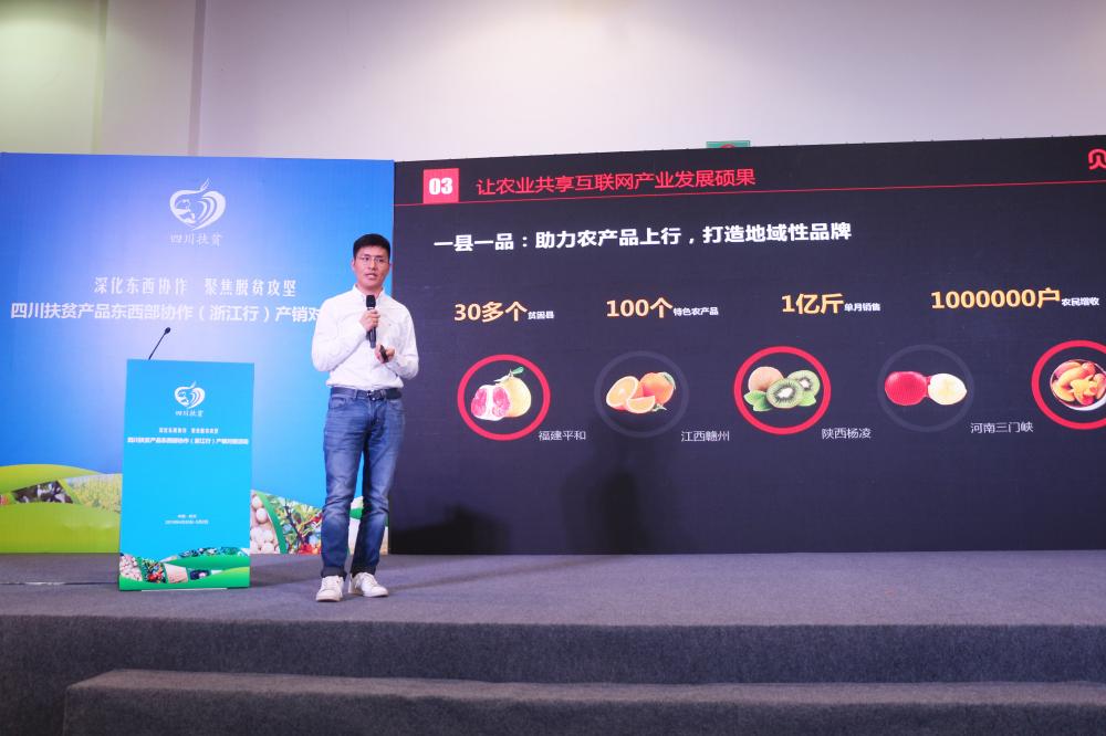 浙江省人民政府副省长朱从玖、四川省人民政府副省长李云泽、商务部市场体系建设司副司长李刚等出席对接活动和推介会。贝店公关总监张洪涛代表电商企业作了题为探索精准扶贫新路径的分享。