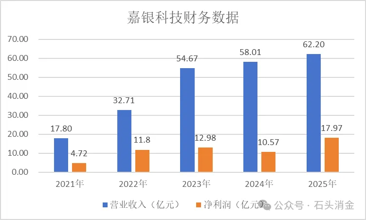 据财报披露,嘉银科技2025年营业收入62.2亿元,同比增长7.3%,净利润17.97亿元,同比增长45.36%。在监管持续收紧的背景下,营业收入和净利润均创出近年历史新高。