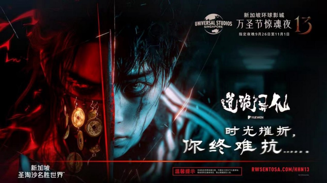 在本次圣淘沙名胜世界于新加坡环球影城推出的“万圣节惊魂夜13”中,《道诡异仙》主题探险屋以小说世界观为线索串联游戏动线。游客可深入探索“清风观”、“白玉京”等标志性场景,与原著NPC角色展开高能剧情互动,从读者化身“闯关者”。