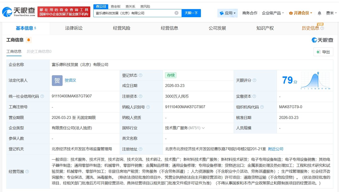 富乐德在北京成立新科技公司 注册资本3000万观点