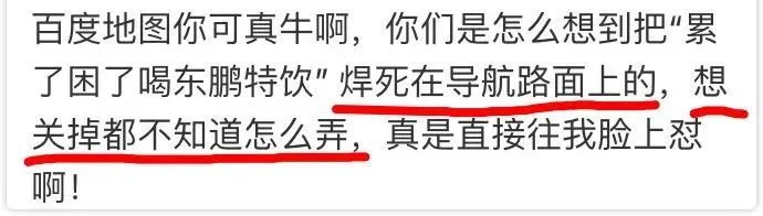 近日,一位山东网友讲述了使用百度地图的遭遇:驾车前往客户公司途中查看剩余里程时,屏幕骤然弹出“累了困了喝东鹏特饮”的动态广告,橙色包装特写几乎占满界面。视线被吸引的瞬间,导航语音提示右转的时机已迫在眉睫,方向盘险些错过最佳转向角度。该司机坦言,此后每次确认导航信息时,类似广告总会强势占据屏幕中央,严重干扰驾驶者对关键路况的捕捉。