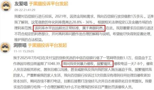 但快速扩张中,合作机构管理松散,对联合贷款的风险分担、资金用途监测缺乏有效手段;自主风控流于形式,部分核心环节依赖第三方平台;客户投诉集中爆发,截至2024年11月,黑猫投诉平台累计投诉量超4800条,60%以上涉及违规催收、高息放贷等问题。
