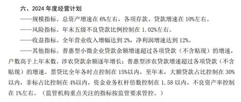 旷投还注意到,在2023年财报中,江南农商行给出了2024年的各项业绩和监管指标计划。可对比了2024年的财报,这些指标几乎都没有达成。