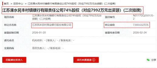 旷投注意到,在去年12月,江苏溧水民丰村镇银行就已经挂牌江苏省产权交易所,但首次挂牌却遭流拍。1月20日,再次挂牌转让74%股权,前后两次挂牌价格都为7360.63万元,转让方为其主发起行——江苏民丰农商银行。
