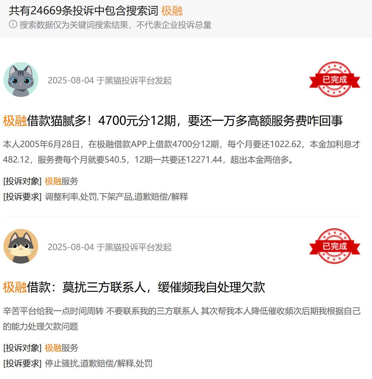 嘉银科技面临的合规问题犹如一座大山,压得其喘不过气来。在黑猫投诉平台上,以“你我贷”和“极融”为关键词的搜索结果高达近10万条,投诉内容聚焦于高利率、暴力催收和隐性收费三大问题。用户纷纷反映,借款合同中服务费、担保费等隐藏条款繁多,普通借款人难以看清真实成本。这种信息不透明和收费复杂化的做法,不仅侵犯了消费者的知情权,更可能触碰监管红线,放大合规风险。