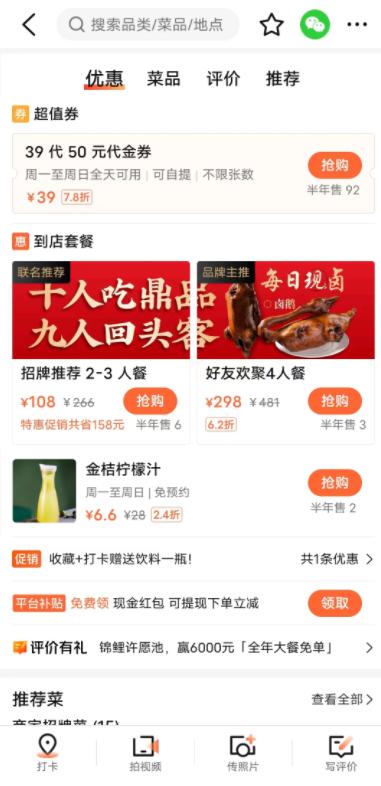 而大众点评中,优惠折扣则是作为主要内容进行呈现。
