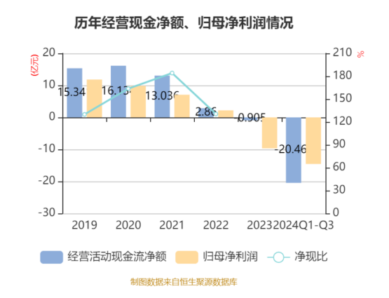 如果说营收还能差强人意,用友网络在净利方面的下滑更是前所未有。前三季度,用友网络的归母净利润亏损14.55亿元,上年同期亏损10.3亿元,亏损同比扩大41.24%;扣非净利润亏损14.84亿元,上年同期亏损11.36亿元;经营活动产生的现金流量净额为-20.46亿元,上年同期为-18.82亿元。