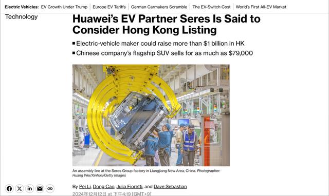 12月12日,彭博社一则消息引爆了汽车圈:华为的亲密战友赛力斯,或将赴港IPO。