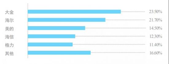 品牌格局的初步确立见证了这个竞争趋势的形成与发展。据报告显示,2020年上半年物联网多联机市场逐渐形成了以大金、海尔、美的、海信和格力为主的五强格局,其中海尔以21.7%的市场占有率位居第二,美的以14.5%位居第三,海信以12.3%位居第四,格力以11.4%位居第五。