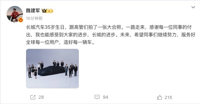 魏建军发长城汽车高管合照“意外”泄密:超跑要来了汽车