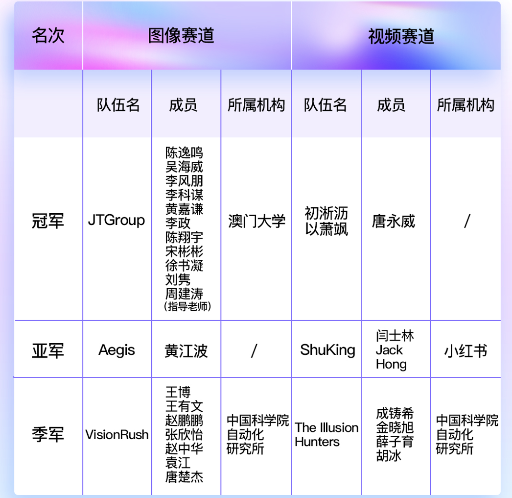 【TechWeb】9月3日消息,外滩大会AI创新赛·全球Deepfake攻防挑战赛结果正式揭晓。澳门大学代表队、个人参赛者唐永威分别获得图片和音视频赛道冠军。个人参赛者黄江波、小红书代表队ShuKing分获图片、音视频赛道二等奖,中科院自动化研究所2支队伍分获图片和音视频赛道三等奖。
