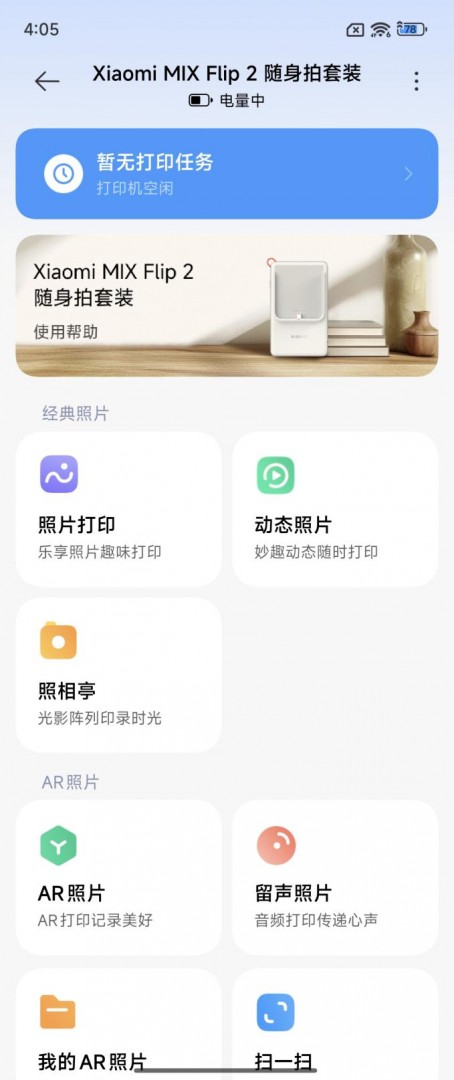 不仅如此,套装还支持通过米家App与手机连接,作为照片打印机使用,升级后的AR照片打印功能,可以直接打印动态照片,打印出来的照片封面帧,通过米家App扫描可在手机上以AR形式查看3秒短视频,让用户的回忆更加生动有趣。