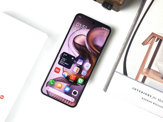 首先在外观设计方面,小米MIX Flip 2可以说是独具匠心。其内屏采用了一块6.86英寸的AMOLED屏幕,分辨率为2692×1212像素,支持120Hz的高刷新率。屏幕的色彩表现丰富而准确,即使在强光下,屏幕内容依然清晰可见。无论是看视频、玩游戏还是浏览网页,都能为用户带来流畅且细腻的视觉体验。