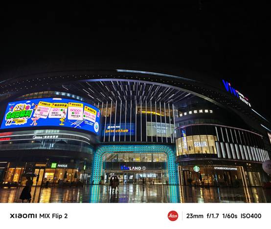在夜景拍摄方面,小米MIX Flip 2同样表现出色。其主摄的大光圈和高感光度性能,能够捕捉到更多的光线,在暗光环境下拍摄的照片画面亮度较高,噪点控制得当,细节依然丰富。而在光线复杂的环境下,该机对灯光高光的压制出色,暗部细节得到较好保留,色彩还原准确,整体氛围感强。比如在拍摄城市夜景时,灯光璀璨的建筑和街道在照片中能够得到清晰的呈现,灯光的色彩鲜艳而不失真,同时照片的暗部细节也得到了较好的保留,没有出现明显的过曝或欠曝现象。