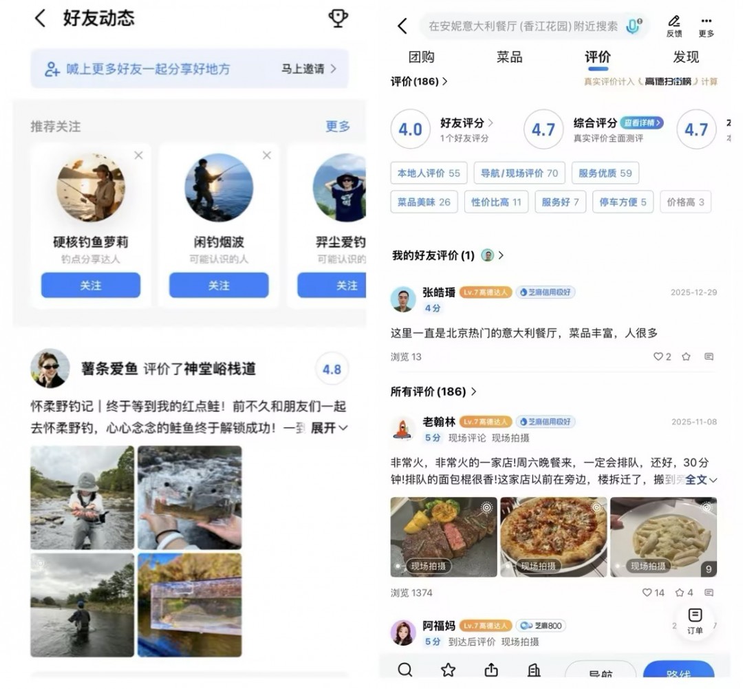 “好友动态”功能则是用户在浏览榜单时,可优先查看好友对商户的评分、评价及公开发布的地点动态。相比陌生人的平均分,来自熟人的亲身反馈更具参考价值,也让榜单更有温度、更值得信赖。
