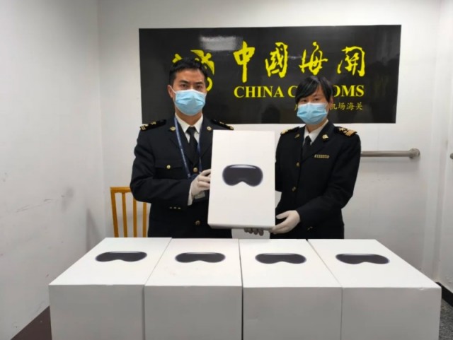 【TechWeb】3月25日消息,海关总署官方信息平台“海关发布”发布消息称,近日广州海关在广州白云机场空港口岸旅检渠道查获旅客违规携带进境的头戴式显示设备,现场查获5台苹果Vision Pro。