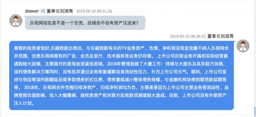 今天上午,乐视网采用网络远程的方式举行了2018年度业绩说明会,乐视网董事长刘淑青、总经理兼财务总监张巍、独立董事王雷让、董事会秘书白冰等现身说明会,对股东关心的问题进行解答。