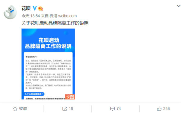 今日,花呗官微发布说明称,近日花呗启动了品牌隔离工作。品牌隔离后,花呗会成为重庆蚂蚁消费金融有限公司的专属信贷品牌,专注于中小额消费需求。