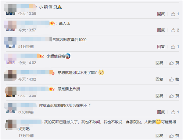 借呗之后,花呗也启动了品牌隔离。有网友表示,莫名其妙额度降到1000。