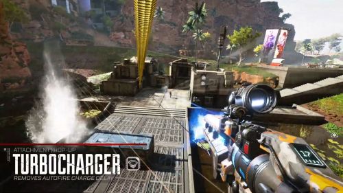 和《Apex英雄》其他的枪械不同,“浩劫”兼容多个上旋器配件。如果你装上了“可选开火接收器(Select Fire Receiver)”上旋器配件的话,那么“浩劫”就有了蓄力射击的能力。蓄力射击工作原理就像一个狙击枪一样,允许玩家以高精度击杀敌人。