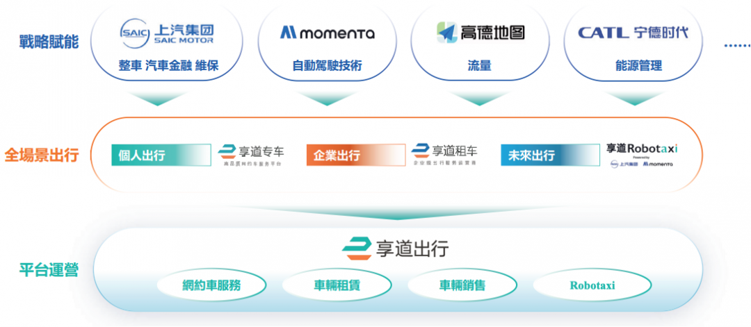 招股书显示,享道出行为中国全场景智慧出行平台,由上汽总公司发起成立,在发展过程中引入了Momenta、高德、宁德时代等关键产业链投资者,业务覆盖个人出行(网约车服务)、企业出行(车辆租赁)及未来出行(即Robotaxi服务)等多元场景需求。