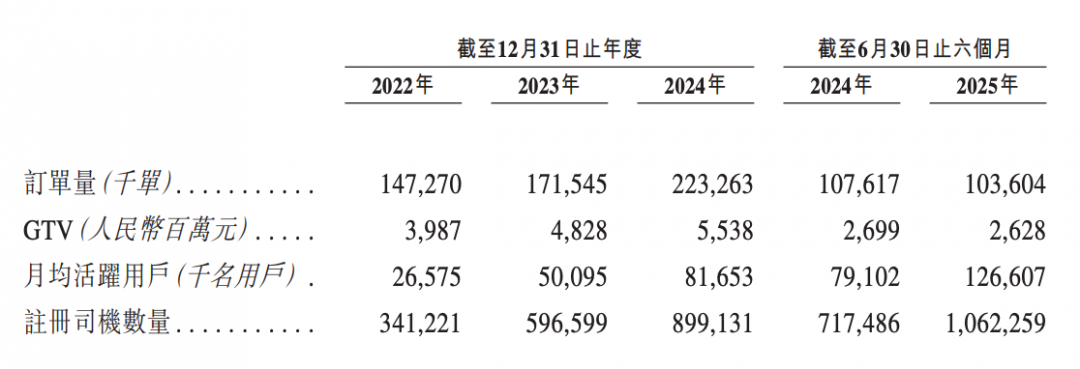 2022年、2023年、2024年及2025年上半年,享道出行的网约车订单量分别为1.47亿单、1.72亿单、2.23亿单及1.04亿单,其中来自聚合平台的订单量分别为1.35亿单、1.59亿单、2.17亿单及1.02亿单,占比分别为91.8%、92.4%、97.3%及98.1%。