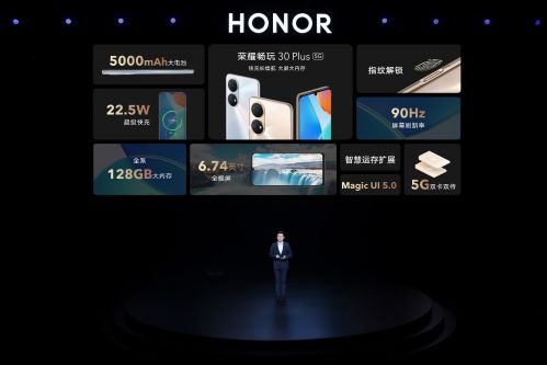 本次荣耀周年庆上,荣耀畅玩系列5G新品荣耀畅玩30 Plus也正式发布。“快充长续航,大屏大内存”作为一款高品质入门5G手机,荣耀畅玩30 Plus配备22.5W超级快充、5000mAh大电池、6.74英寸高刷大屏、128GB大存储,支持5G双卡双持、侧边指纹等功能,提供幻夜黑、钛空银、晨曦金、魅蓝海4种配色,售价1099元起,12月16日16:00开启预售,12月31日10:08在荣耀商城、各大授权电商平台及荣耀线下门店正式开售。