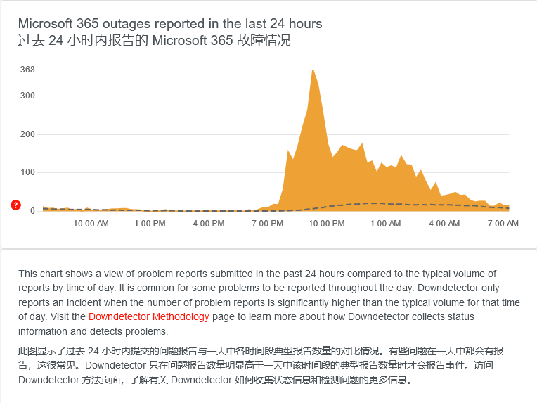根据 DownDetector 网站显示的数据,自周二上午开始 Microsoft 365 应用程序中断的报告激增,用户报告 Outlook 和其他应用程序出现问题。