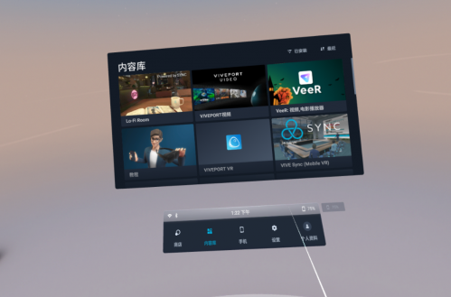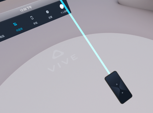 而手机的功用还不止于此。配合VIVE Flow,手机不仅可以作为一个“内容供应商”,同样还是一个无线遥控器。配对后的手机,可以通过触控手机屏幕的不同区域,实现点选、回退,返回桌面等操作,经过简单的熟悉过程后就能盲操作,还是挺方便的。比起其他产品的自带手柄来说,手机操控可以做到随时取用,更重要的是避免了丢失。要知道,佩戴VR头显后,基本上就活在了自己的小世界中,对于外界环境处于两眼一抹黑的状态。而手柄由于并不是每时每刻都需要用到,容易乱丢乱放,所以反而是最容易丢失的。手机基本上不存在这样的问题,选择了影片开始欣赏后,我就习惯性的把手机放在了兜里,大大降低了此前手柄丢失的可能性。