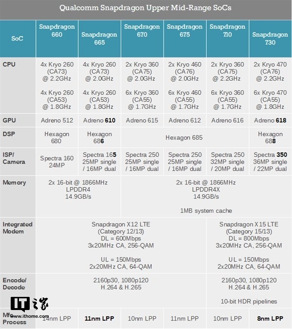 其中骁龙730和骁龙730G首次采用三星8nm LPP工艺,高通正式发布了骁龙665、骁龙730和骁龙730G三款新SoC,骁龙665还搭载Heagon 686 DSP和Spectra 165 ISP。