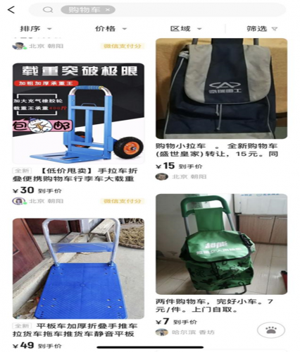 在转转平台除了买卖购物车的需求增加,满足日常购物需求前后去二手电商平台买卖便携式购物车,也直接带来了转转平台上购物车的交易升温。